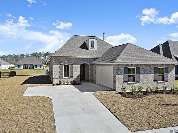 Charming Springfield floor plan by Level Homes READY NOW in Bruce’s Harbor on a waterfront lot with access to Blood River! The Springfield plan is a spacious and triple split floor plan that features 4 bedrooms, 3 full baths and a flex/study space. The spacious living room is centered around a vent-less gas fireplace and is open to the dining with views of the covered patio and rear yard. The kitchen and breakfast room are separated from the dining room by a "Spice Chest" stained exposed beam. The gourmet kitchen features custom painted wood cabinetry with 5" hardware pulls and under cabinet lighting, an oversized island with sink and overhanging pendant lighting, 3cm Moon Light granite, 3x12 white Raku Gloss tile backsplash, stainless appliances included a gas cooktop with a built-in wall oven and microwave and walk in corner pantry. The master suite is located at the opposite side of the home and features a spa like bath with a separate soaking tub and custom tiled shower with a seamless glass enclosure, dual sinks with 3cm Moon Light granite, framed mirrors, a separate water closet and a nice size walk-in closet. Bedroom 2 is located at the front of the home and has it’s own hall bath. Bedrooms 3 and 4 are on the opposite side of the home and share a separate hall bath. There is a spacious laundry room and a separate study/flex space that has room to add an "optional" mud bench or desk located off the garage entry. The yard is professionally landscaped and fully sodded! Waterfront living In Bruce's Harbor, just minutes off of I 12 at the Springfield exit and only 30 minutes from Baton rouge! Relax and unwind everyday! Water access to Blood river / Tickfaw. Other lots/plans available.