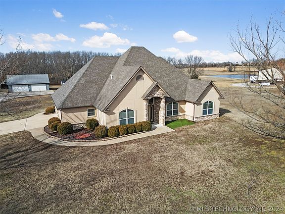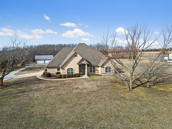 LISTING ADJUSTMENT and MOTIVATED SELLER! This listing has been adjusted to include the house and 9 acres. Nestled amongst mature trees and surrounded by the beautiful 9 acres makes this custom home perfectly positioned to have the seclusion of country living and the convenience of shopping and dining with a short 12 mile drive to Bartlesville. The finishes on this custom home make it a show stopper. Some of the great selling points include granite countertops, large laundry area, walk-in shower and jetted tub in the master. Safety and efficiency are evident in this house as it features 2x6 exterior walls, spray foam insulation, a tankless hot water heater and an indoor safe room. This home uniquely has a hidden staircase that leads to the bonus area that can be utilized as a 5th bedroom, office, media room or whatever hobby area you may need. As if that wasn't enough, there is a 30x40 shop that can be used to house all of your toys or additional covered parking. Text agent to show.