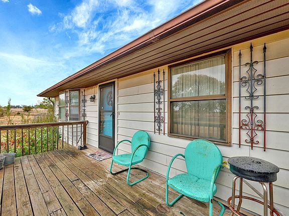 If you are looking for a home with ample space and a quite place in the country look no more. Located just a half mile off of black top east of the quaint town of Douglass this home features over 2500 sq ft of living area. On the main level enjoy an open concept with a huge living, kitchen and dining space, two bedrooms, one full bath and laundry. The basement features a finished room that could be an office and a large family room with a second set of stairs that lead to the sunroom and then to the back yard, and another full bathroom. The bonus area, that I called a sunroom, can be work space, playroom, exercise area or so many things. Besides the two car attached garage there is a shed that can be for livestock or converted to whatever your heart desires. With almost 5 acres there's room for chickens, goats, horses or a menagerie of lots. Take a look soon and you can be in before the Holidays. Seller will make no repairs. New septic system last year, new luxury vinyl 2023. Gate is closed by not locked, please close when you leave.