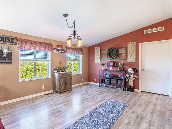 Fenced front yardPasture viewsNice size primary suiteSpacious split floor planVaulted ceilingsLaminate flooring