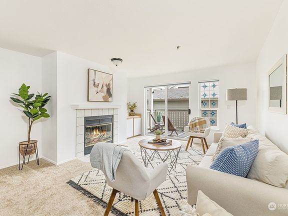 Don't miss this beautifully maintained 2 bedroom, 2 bath, ground-floor condo offering a wonderful blend of comfort and convenience. With fresh paint, new flooring, and abundant natural light, this unit is all ready for you and should remain worry free for the foreseeable future. Step inside to discover a cozy wood-burning fireplace, a primary bedroom suite with ample closet space, and an en-suite bathroom - and the second bedroom gets it's own bathroom as well! The community offers a clubhouse, exercise room, sport court, and secure access. This move-in ready condo is walking distance to grocery stores, pharmacies, restaurants, bars, cafes, transit, and the mall! No pet restrictions, no rental cap, welcome home!