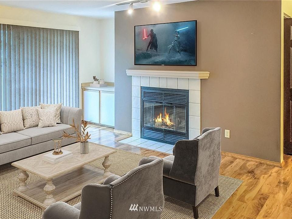 Fabulous affordable opportunity to live or invest in blossoming Everett! Well-maintained, bright & airy ground floor unit at The Broadway that is move-in ready & waiting for you! Functional open layout boasts sleek laminate floors, stainless steel appliances, a wood-burning fireplace & plenty of space to relax or entertain. Generously sized bedroom includes a walk-in closet while the nicely updated bathroom has heated tile floors! Relax & soak up the upcoming springtime sun on your private balcony, then head to the clubhouse to swim, work out or mingle w/ neighbors. In-unit laundry, designated carport (space 89), well-run HOA & no rental cap make this a smart investment. Conveniently located close to all amenities, Boeing, freeways & parks!