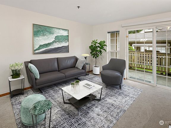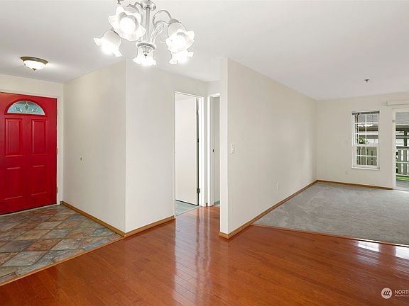 This move-in-ready, first-floor unit is located in a privately gated community with 24/7 surveillance. It features 2 bedrooms and 2 full baths in a well-maintained and well-managed complex. The unit faces a peaceful greenbelt and includes nearly new appliances, all less than a year old. Enjoy a cozy wood-burning fireplace and relax on the covered patio. Conveniently located to all amenities, I-5, I-405, Everett Mall, Boeing and park & ride. Clubhouse with gym. NO RENTAL CAP. Owner will pay off the SA at closing. Come see this charming home before it's gone!