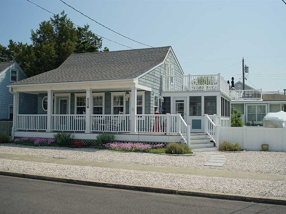 Exactly what you've been waiting for! A charming, delightful Stone Harbor studio-style single home with room for you and your family to enjoy the very best of the beach! Lovingly renovated by the present owners, this home awaits its lucky new owners! Inside you'll find three bedrooms, one full bath, and one half bath, as well as a beautiful kitchen. The great room with vaulted ceiling offers a dining area plus sofa and love seat for relaxing or watching television. Outside, this home offers tremendous outdoor living space, including a large covered deck spanning the front of the house, plus a second floor deck for catching some sunshine or a breeze. There is also an enclosed sunroom for chilly evenings--or open up the screened windows to enjoy "outside" living anytime! An outside shower and storage shed are in the fenced rear yard, while a generous side yard offers additional outside space.
