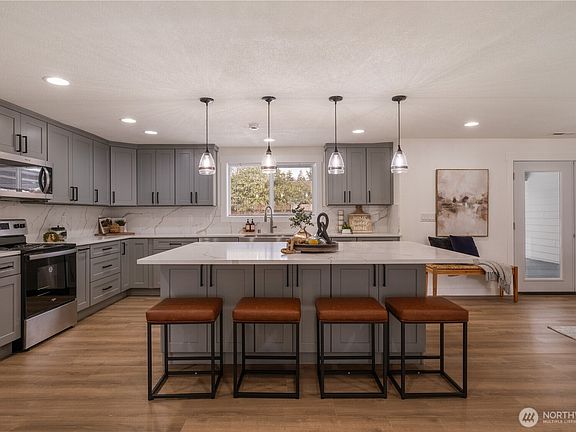 Welcome to this exquisite 6 bedroom - 3.5 bath rambler style home, perfectly blending modern luxury with timeless charm. Nestled in a cul-de-sac, this stunning property boasts a complete transformation showcasing top of the line finishes, sleek design , and exceptional attention to detail. The open concept living area invites relaxation and entertainment , featuring high ceilings, large windows and a sleek gas fire place. The gourmet kitchen is a culinary dream, equipped with ample cabinetry and a spacious center island-perfect for food preparation and casual dining. The home has been renovated in Dec. 2024 and converted into an AFH style home but it can easily just home a large household as well. Read private remarks for additional info.
