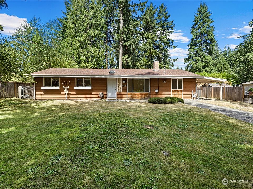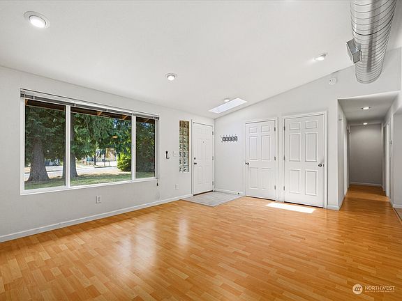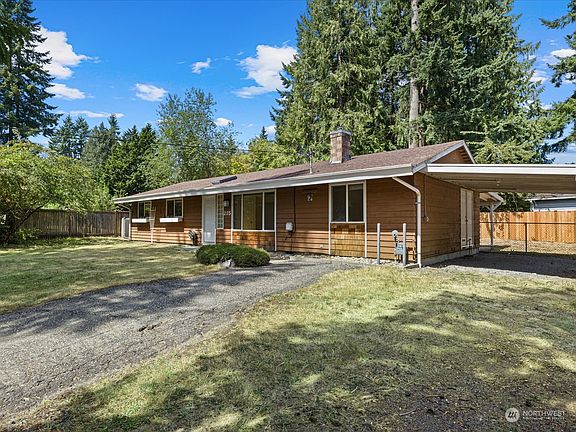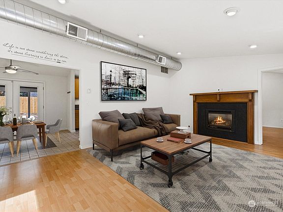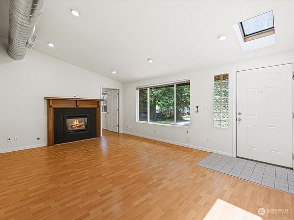 Welcome to your move in ready rambler! Industrial flair throughout, highlighted by skylight in entry and stylish glass block accents. Enjoy the warmth of a gas fireplace in the living room that opens to a dining area with French Doors leading to a charming backyard. Extend your living space with a covered back patio and updated storage shed. This home offers comfort, style, and convenience with easy access to I-5, transit, and Mill Creek Town Center.