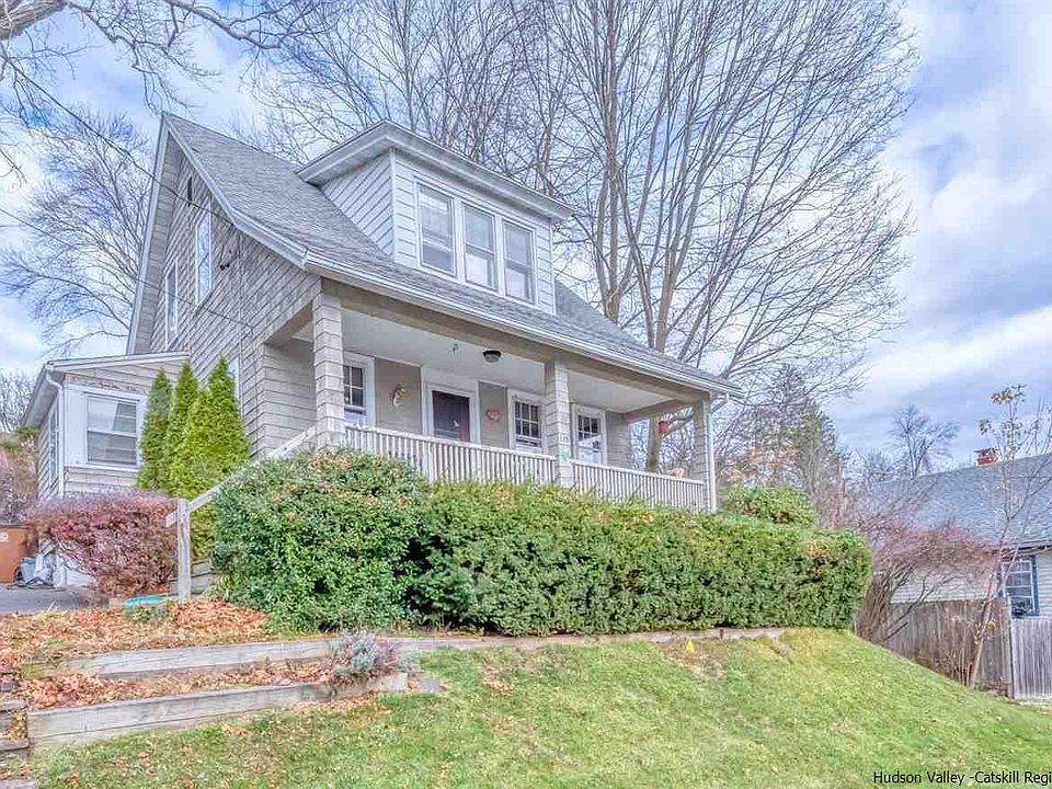 HIGHEST AND BEST DUE MONDAY DEC. 5TH BY 12 NOON. This Charming Circa 1902 home located in Uptown Kingston is a short walk to the Historic Stockade Area. Enjoy great Restaurants, Shops and a Weekly Farmer's Market just blocks away. Situated back up off the Street this home has a wonderful front Southern Exposure giving it lots of natural light. A lovely rocking chair front porch is a perfect spot to start the day. An original front door welcomes you into the first floor of this home offering a comfortable livingroom, eat in kitchen and a den with nice original details and a half bath. The den can also be a third bedroom or guest room if needed. There is also a laundryroom and mudroom with access to a back deck and spacious yard with seasonal views of Uptown Kingston. There are 2 bedrooms and a full bath on the second floor including a bedroom with a vaulted ceiling and skylight. Central air is a real plus and the furnace and hotwarer heater are newer. This affordable home is move in ready yet being sold as is at this great price. There is parking down below the home as well as in the driveway. The southern sun exposure on this home allows for a fast snow melt on the driveway.