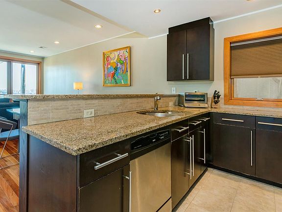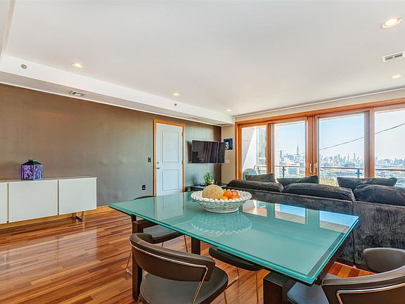 Fabulous 3Br/2ba w/ stunning Manhattan views. Built in 2007, luxury condo boasts of a sprawling 1696 sqft, brazilian cherry hwf, flr to ceiling Pella windows, huge chef's kitchen w/ granite counters, raised bar, Kenmore Elite ss appls, open flr plans w/ a huge balcony off the LR w/ panoramic views of Manhattan. Located on a desirable dead end st in an elevator bldg, easy NYC commute & 1 blk to park. Steps to Hoboken. Enjoy luxury at a fraction of the cost to Hoboken living. 2car deeded garage prkg included!