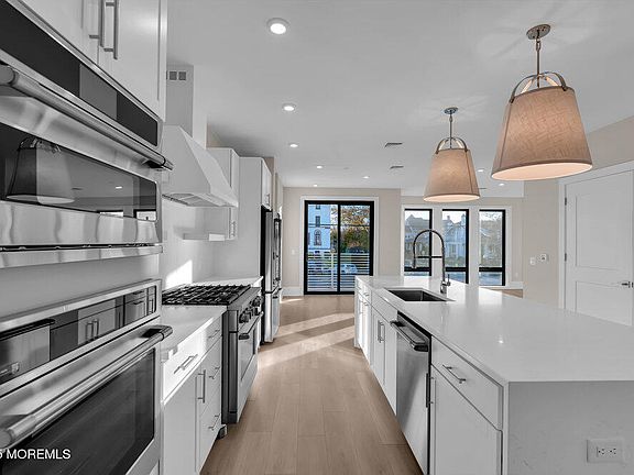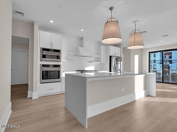 Experience coastal luxury living in this corner 3 bed at the Aegean, in the heart of Asbury Park, NJ. This exquisite condominium, located a mere two blocks from the renowned Asbury Park beach and boardwalk. The residence boasts 2 dedicated garage parking spaces, complete with electric car charging stations, catering to your sustainable lifestyle needs. Inside, the home is a showcase of premium upgrades, including a modern kitchen outfitted with GE appliances, elegant white shaker cabinets, and quartz waterfall edge countertops. The culinary space is beautifully accented by under-cabinet lighting and a timeless white subway tile backsplash. As a corner unit this home is flooded with natural light and the building features a rooftop with gas grills and iconic views of the ocean & Stone Pony