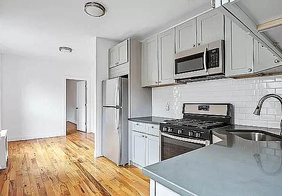 Attractive Renovated 1 bedroom in Greenwood! Stainless-steel kitchen appliances. Great Cabinet Space Good natural light Hardwood floors . Guarantors Accepted! Located near the 36th Street Subway station D/N/R. A hop skip and a jump to "Industry City". Heat and Hot water included No Dogs. Cats welcome with an extra 1/2 month pet security deposit at lease signing . Approximate measurements : Bedroom 11'7 X 8'9 LR/ Kitchen Common area Overall Approx 20' X 9 LR Approximately 9 X 8'6 Kitchen Approximately 11'4 X 8'10