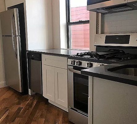 Renovated 2 BR with Stainless steel appliances , including dishwasher . Good as a 2 BR or if you're looking for that home office, great for a master bedroom w home office too ! Master BR (Approx 8 X 11) can fit Queen bed (Tenant currently has a Queen Bed ) 2nd BR (Approx 8 x 8) Tenant currently using as Office but could be used as a BR (w Twin Bed). Great light , hardwood floors , good closet space No dogs but a cat may be accepted with an extra 1/2 month pet security deposit upon lease signing . Near subway and industry city Brokers Fee: 12% of the Annual Rent