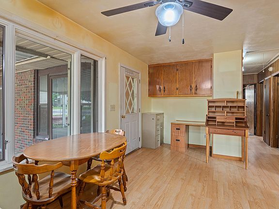 Lots of potential with this unique home. This 3 bedroom, ranch style all brick home features an oversized garage/workshop, big bonus/family room, an enclosed breezeway that would be great for storage, a screened in front porch/sun room, covered driveway parking, a covered patio out back, and a fenced in yard! This home has lots of possibilities! Schedule a showing today!