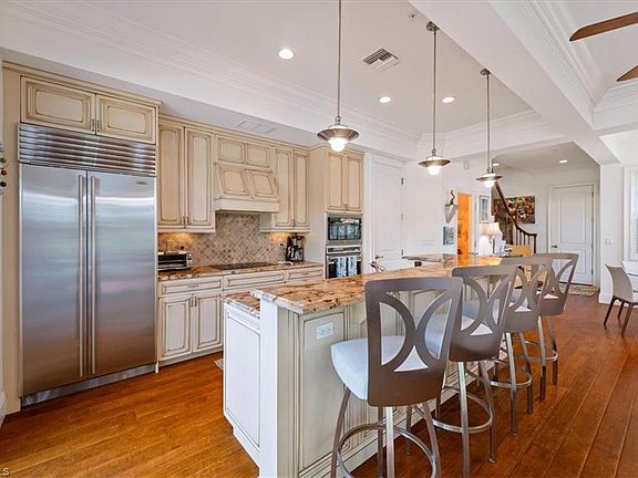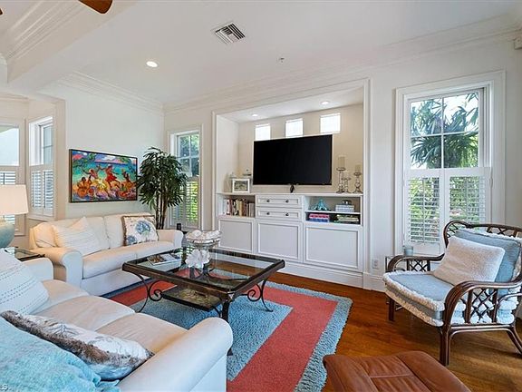 Located just moments from 5th Avenue’s upscale dining, boutique shopping, and the Naples library, this elegant 3-bedroom + den, 3-bath residence offers 2,482 sq. ft. of refined living. High ceilings, crown moulding, and hardwood floors create a sophisticated ambiance, while western exposure fills the home with golden afternoon light. A private entrance enhances the secluded, estate-like feel. The den/library offers a serene retreat, perfect for work or leisure. Enjoy modern comforts including air conditioning and an in-home washer/dryer. Style, privacy, and an unbeatable downtown location, this is Naples luxury living at its finest.