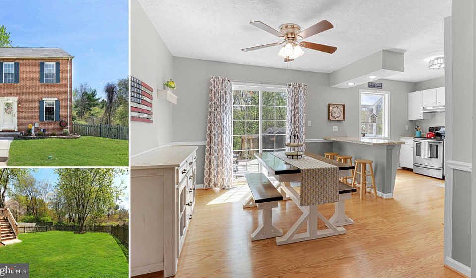 Gorgeous, updated end unit with huge fenced yard backing to woods in Carroll Meadows!! Bright living room opens to dining room and country kitchen with gleaming hardwoods and access to large deck and yard- perfect for relaxing, playing or entertaining! Kitchen boasts newly refinished cabinets, custom pantry, greenhouse window for indoor gardening, stainless steel appliances and breakfast bar! Upper level features master suite with walk in closet and attached bath. Two additional generously sized bedrooms. Finished, walkout basement with rec room or bonus bedroom, half bath and storage/laundry room. Fresh paint throughout & Fiber Optic Internet. Community includes ample parking, free trash pick up, tot lot and convenience to local shopping, dining, and more!