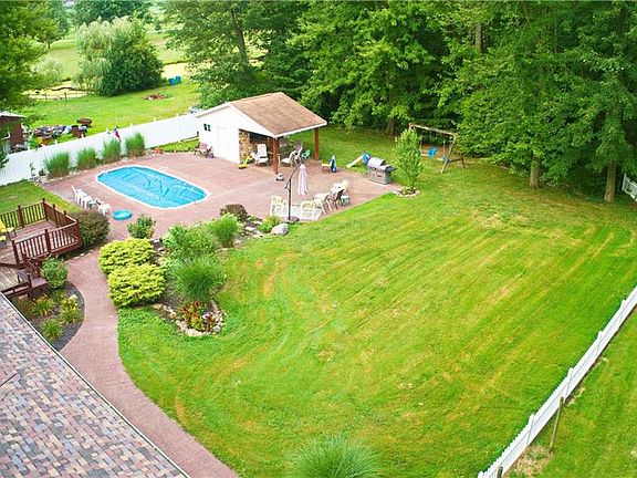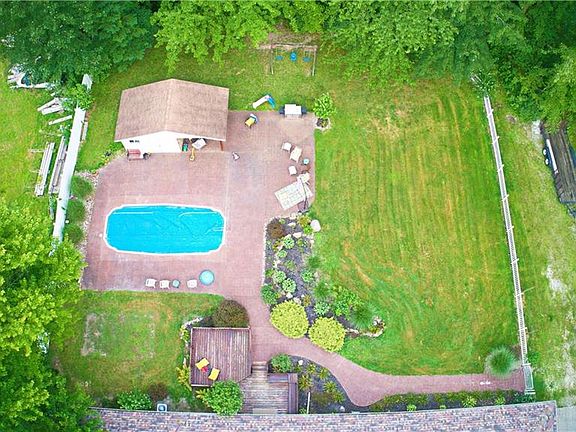 Fantasy Finds Reality! If surroundings make a home this lushly landscaped four bedroom, two and one half bath Ranch Style home is the perfect choice. Expansive floor plan, spacious living room and dining room, large eat-in kitchen, double sided sandstone fireplace to enjoy in the living/family room which offers access to backyard, over-sized bath rooms, partial finished basement with massive bar area great for entertaining family an friends, private backyard Oasis with in-ground pool and pool house with bar, circular driveway, three car garage and so much more. To see something different call Today!