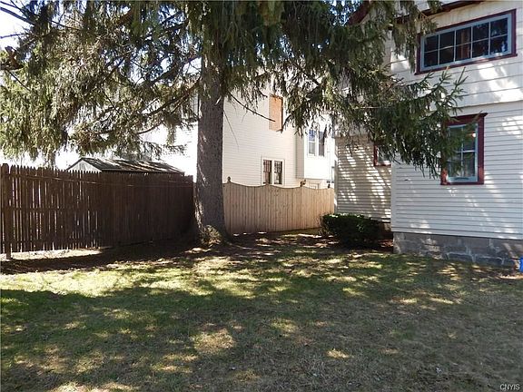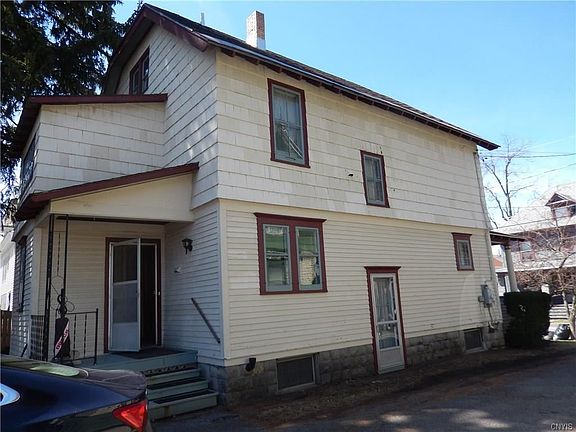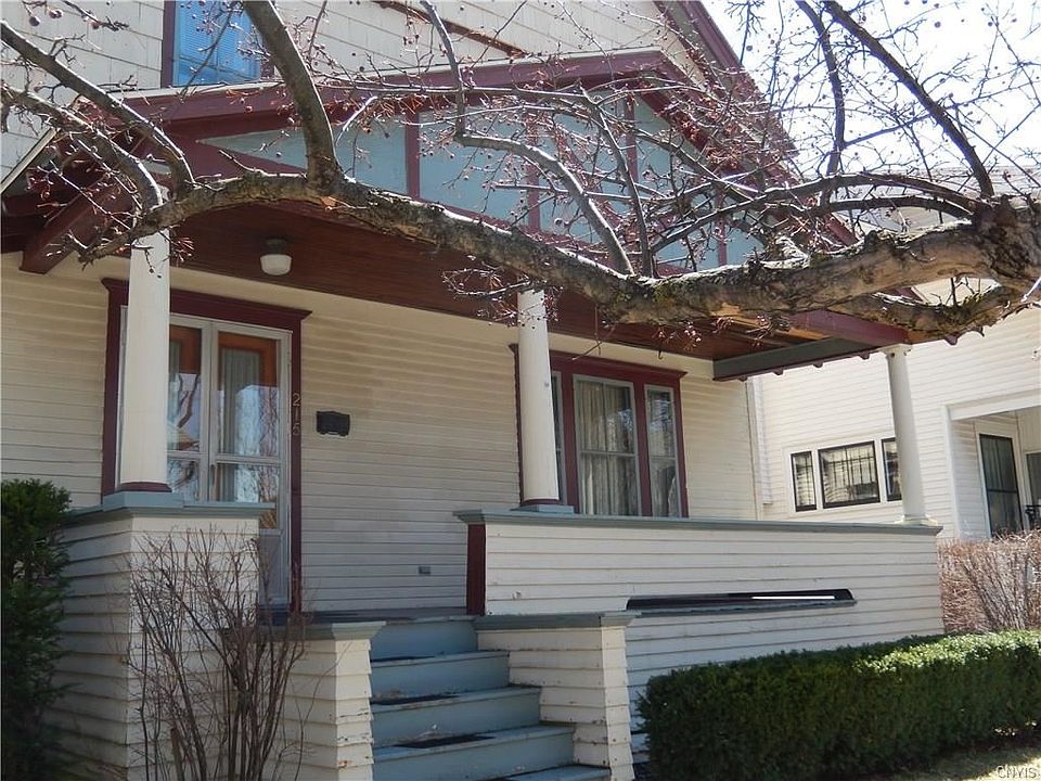 Classic 3 bedroom, 1 bath Colonial with endless charm, character and tremendous potential! Located close to schools, Thompson Park, and a short commute to Fort Drum. Sweet kitchen with attached mudroom/ pantry, spacious dining room, gorgeous oak woodwork, hardwood floors, boxed beam ceilings, and a lovely wood burning fireplace! Huge bathroom with washer & dryer in place. Additional bonuses include four (YES!) stall garage, walk-up attic, full basement, newer furnace and 1 year HOME WARRANTY coverage for the buyer. Nice, shady back yard and a great front porch for relaxing. If you are looking for a well cared for, affordably priced home with loads of potential, this is the one! Call today!