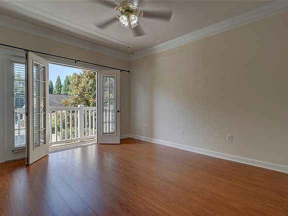 Centrally located and near the Perimeter Mall. This Dunwoody Gated Condominium Community has it all! Refrigerator, Washer & Dryer, even a new HVAC system, hardwood floors and new paint. Covered assigned parking space with elevator into building. Living room features French doors that lead out to a balcony. Kitchen has a huge walk-in pantry, while the Master bedroom has patio access a great place to relax after a long day and a large walk-in closet. Second bedroom has it's on access to patio.This complex includes a work out facility with Saltwater pool and outdoor grill.