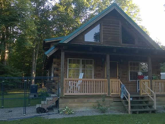 Well Maintained Rustic Log Home offers 2 bedrooms, 2 baths, and a living/dining room combo with hardwood floors and carpet. Newer rear deck and handicap ramp. Concrete sidewalk, oversized 2 car detached garage with water and half bath, An additional large garage/storage building with electric and concrete floor. Beautiful mature trees and creek at the back of this 2 acre property makes it feel like the cozy and comfortable place you will want to be.