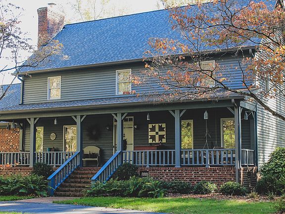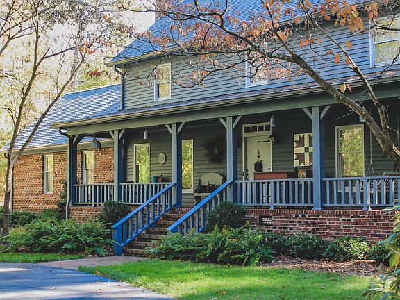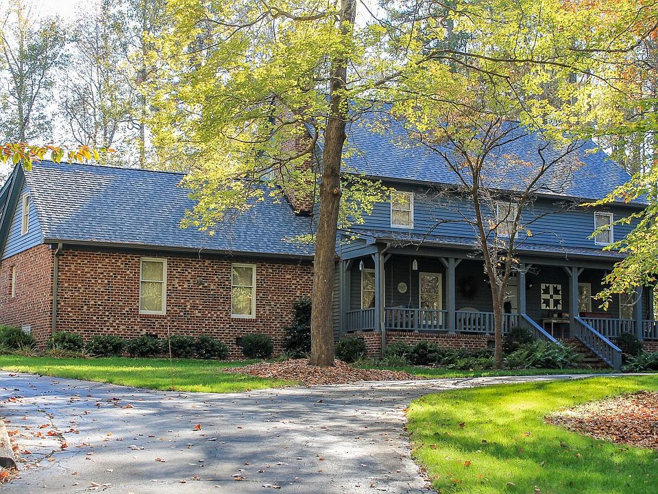 This wonderful home sits on a double lot within the peaceful neighborhood of the Henderson Country Club. This home is very warm and inviting, yet comes with plenty of space with 3 stories and nearly 4,000 square feet on 1.6 acres. The primary bedroom is on the main floor, with 3 additional bedrooms and 2 full twin sink bathrooms upstairs. This home has plenty of space for families and guests. Throughout the home are beautiful wooden floors and rustic accents. The living room boasts locally sourced and historic wooden beams with a brick fireplace. The kitchen is spacious and includes a center island with an additional sink. A classic swinging door leads you from the kitchen into the formal dining room. A sizeable walk-in attic on the 2nd story provides plenty of space for storage. There is even a finished 3rd story bonus room that could be used as a recreational room or for additional storage if desired. The laundry room is on the main floor and conveniently has it's own sink and storage cabinets. The large, 2 car garage is connected and has work tables and cabinets. There is also a new tool shed in the backyard for extra lawn and garden tool storage. This property has a new and extensive landscaping plan that beautifully compliments the home with manicured front and backyards. The house comes with a large, covered front porch with a swing and a fantastic back patio. The additional side lot that conveys is wooded with pines and adds an additional layer of privacy to the home. This is truly a turn key opportunity for buyers, as the home comes with: a new roof, new whole house Generac generator, new HVAC system, new tankless water heater, new hardwood floors on the 2nd floor, a new overhead garage door, refrigerator in the kitchen, washer and dryer, and Ring security cameras ready to pair. The location is fantastic, providing seclusion while still being minutes away from amenities. The front entrance to the home is off of Beechwood Trl, with a convenient back entrance along Oxford Rd. Only 35 minutes to Durham and less than an hour to Raleigh.