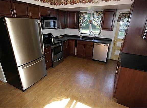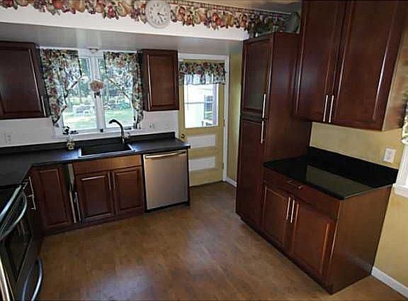 Great 3 bedroom ranch/cape! Spacious living room with hardwood floors, wood stove insert and tile hearth! Updated kitchen with maple cabinets, granite tops, pantry cabinet and eat in area! All bedrooms have hardwoods! Tile floor in the foyer! Partially finished attic with storage and 1/2 bath. More room in the basement with knotty pine walls! Fenced rear yard!