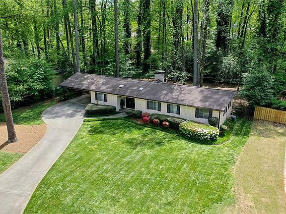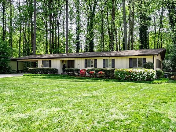 Hurry! Amazing opportunity in a wonderful Sandy Springs neighborhood! Outstanding location for this 4BR, 3BA MID-CENTURY RANCH. Double front doors into Great Room with vaulted ceilings. Picture windows flank the fireplace for lots of natural light. HUGE Kitchen/Breakfast Room to left side with views to the Great Room. Right side hallway to 4 BR â Two have their own en-suite baths! Other two BR share hall bath. Laundry & Pantry located in mudroom area between Kitchen and Carport. Separate Tool Room in Carport. Level Front & Back Yard. Ready? Set? Renovate!