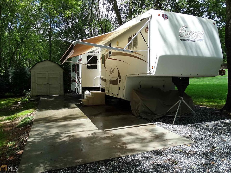 Great RV site bordering green space with storage building. Partial concrete pad and partial gravel. Full hook ups and large enough for any size RV. Sellers also have a 2007 Excel Peterson MKO Limited, 37 ft long fifth wheel that can be included in the sale for an additional 19,300. Very well maintained! Sold for 94,000 when new! Fifth Wheel has solid surface countertops, 4 slides for lots of open space, full size fridge and microwave, range/oven combo, fireplace, all furnishings and so much more! Located in the gated RV resort of Paradise Valley with clubhouse, pool and gated security. Close to Wineries, Helen and Cleveland! A very affordable mountain getaway!!