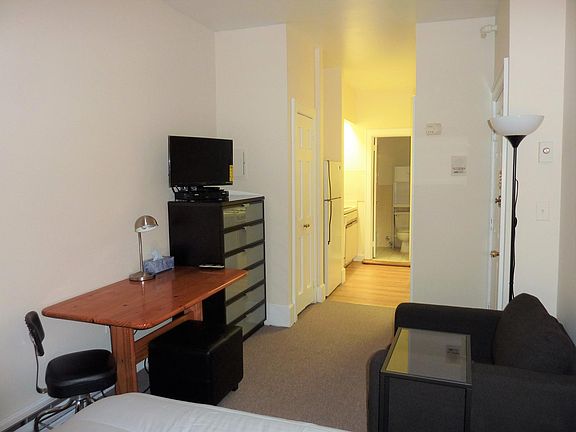 Comfortable and clean street-level studio apartment in the best Hoboken downtown location on Bloomfield Street, one block from Washington Street and a five minute walk to the Hoboken PATH train. Air conditioner included and two small full-size closets. Dishwasher and microwave in kitchen with plenty of kitchen cabinet space. High ceilings and large windows provides lots of sun and light. Two large washing machines and dryers in basement that are free to use. Available furnished or partially furnished. June 1st availability. For showings please contact listing agent Diana Malkhasian, Liberty Realty at 201 320 6898 cell. Broker's fee $1500 Credit check $40