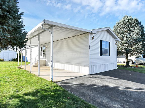 Wonderful 3br 2ba home in Scioto Estates waiting for a new owner! This home sits in a quiet area of the park and backs a tree line for privacy. This home offers a 10x33 covered patio for sitting and relaxing or covered 1 car parking along with additional parking at the end of the home. Nice size shed with loft will stay with the home! Large living area open to the kitchen equipped with refrigerator, gas stove and dishwasher. Washer and dryer will stay as well. Good size master with tub/shower combo and walk in closet. Couch also conveys with property. Scioto Estates is a family friendly Manufactured home park. No renting is permitted, and park approval is necessary to reside in the park.
