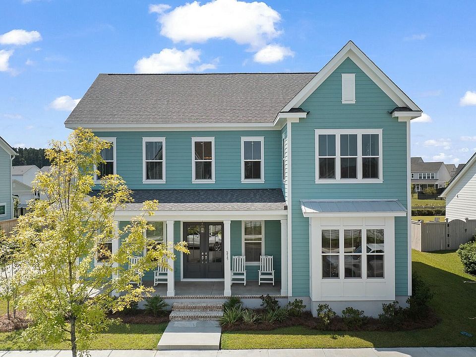 Welcome to 215 Brightside Trail, a stunning 5-bedroom, 4.5-bathroom masterpiece located in the highly desirable Midtown neighborhood of Nexton, Summerville, SC. This impeccable homesite, boasting over 3,500 square feet, features the coveted Drayton floor plan by Homes by Dickerson-- known for its superior craftsmanship, high-quality finishes, and sophisticated design. As you approach, you're greeted by an inviting front porch with charming double entry doors, setting the tone for the elegance inside. Step into the light-filled foyer and take in the soaring 10-foot ceilings and exquisite trim package, complete with crown molding that adorns the main living spaces. Designed for effortless entertaining, the open-concept layout features a show-stopping kitchen, the true heart of this home.Here, you'll find two-toned cabinetry extending to the ceiling, complemented by a stunning full-height backsplash. The large island houses a farmhouse sink, while high-end appliances, quartz countertops, and under-cabinet lighting enhance the kitchen's luxury appeal. The butler's pantry seamlessly connects to the formal dining room, while the bright breakfast nook offers a more casual dining space. The kitchen flows naturally into the living room, where a cozy gas fireplace and triple sliding doors lead to the screened-in porch, providing a perfect indoor-outdoor living experience. From the porch, enjoy serene views of the expansive backyard and pond. The main level also houses the tranquil primary suite, featuring a spacious bedroom, spa-like ensuite bathroom with dual vanities, a frameless glass walk-in shower, and a walk-in closet with custom wood shelving. Completing the lower level is a laundry room tucked away off of the mudroom and a convenient guest suite with a full bathroom, offering comfort and privacy for your visitors.Upstairs, you'll find three additional bedrooms, two full bathrooms, and a media room, providing ample space for family and guests. The oak tread staircase with iron pickets is a striking feature, adding to the home's charm and elegance.Beyond the home, you'll enjoy the vibrant Nexton lifestyle, complete with resort-style amenities, top-rated dining, shopping, parks, trails, and excellent healthcare and schools all just moments away. 215 Brightside Trail offers not just a beautiful home, but a way of life. Don't miss this opportunity to live in one of the nations most sought-after communities!