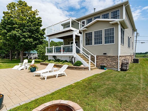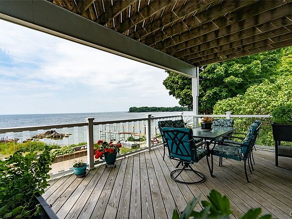 Waterfront properties in Sackets Harbor are few and far between. Here is your chance to purchase a stunning home right on the lake. As you walk through the home you will be wowed by the view. Feel your cares melt away as you gaze out over the lake. If you get too warm, think about a refreshing swim. Inside the home you will love the kitchen with stainless steel appliances and plenty of cabinet and counter space. Dine with a view. The formal dining room is great for gatherings, holiday meals or game night. The kitchen, living room and dining room are all open making entertaining a breeze. A full bath & a spacious bedroom are located on the 1st floor along with a 2nd living room / office that could be a 4th bedroom if desired. An open area at the top of the stairs, would be a great office or reading nook. The master bedroom is more than spacious it is huge! Wake up to a view of the lake and walk out to your upper balcony and enjoy the peace and serenity of lake living. What a way to start the day! Completing the master suite is a large walk in closet and a spacious master bath with a shower and jetted tub. A laundry room, another bedroom and another full bath complete the picture.