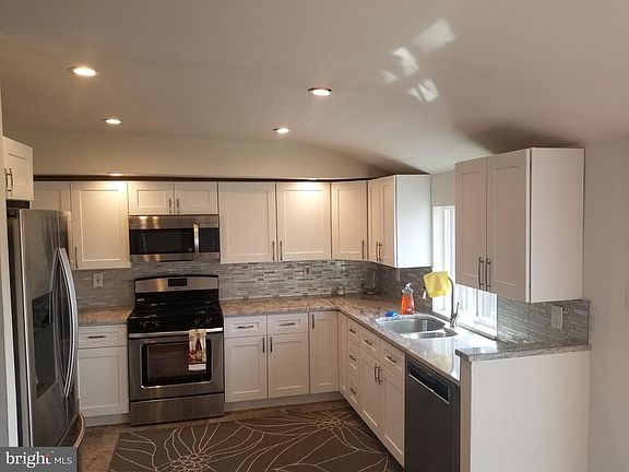 This beautiful bi-level offers 3 bedrooms and 2 full baths. The first floor has a new, large upgraded kitchen with new stainless appliances. All Hardwood flooring through out the top level and separate stackable washer and dryer. The second level has tile flooring through out. the Living Room, Dining Room, and office. Relax in the Den with a cozy fireplace. Finishing the second floor with a brand new Kitchen, all Granite countertops and stainless steel appliances. There is also another stackable washer and dryer. Perfect for an In-law suite. This home has a private driveway. Located on a nice wide street. Please note the Roof has a Life Time Warranty, the hot water heater is 1 year old and the central air conditioning is 6 years young!!