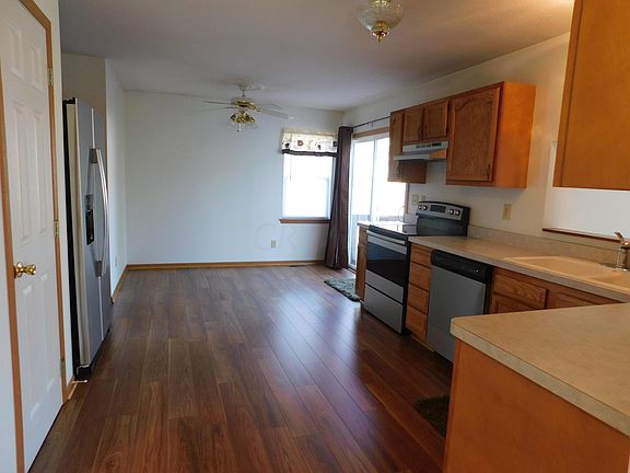 Beautifully updated home with easy care wood laminate in kitchen, eat-in area, living room, and dining room.Upgraded new fleck carpet and padding in bedrooms. Private master bathroom! Well appointed kitchen with quality new stainless steel appliances. New faucet and disposal. Great pantry! Sliding door leads to freshly stained deck. Living room with gas fireplace and lovely rustic mantle. All new cordless mini blinds throughout. Full basement with tons of space. Finished man cave already started with TV area and is ready to customize. Lower level laundry with easy option to have first floor laundy in oversized master closet. Big 2 car attached garage with newer opener. . New roof valued at $10,000 just installed! Located on a quiet dead end street in a great neighborhood.