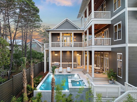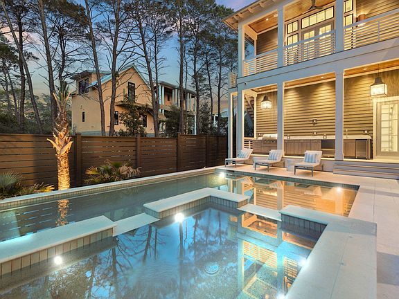 South of 30A Coastal Elegance | Custom-Built Luxury with Pool, Carriage House & Steps to the BeachExperience the perfect blend of coastal luxury and refined craftsmanship in this stunning new custom home located south of 30A, just a short walk from the sugar-white sands and emerald waters of the Gulf. Thoughtfully designed with entertaining and relaxation in mind, this residence offers high-end finishes and seamless indoor-outdoor living.Step inside to soaring 12-foot ceilings, boxed beams, and European white oak flooring throughout. The open-concept living space flows effortlessly to the private saltwater pool, summer kitchen, and covered outdoor living area--perfect for gathering with family and friends. The gourmet kitchen is a chef's dream, featuring Alexandria Quart lcountertops, Custom Covered Bridge white oak cabinetry, a wet bar, wine cooler, ice machine, Thermador appliances, and a spacious butler's pantry. A bonus room on the main level offers flexible use as a home office or additional guest bedroom. Ride the elevator to the second floor where you'll find a secondary living area with mini fridge and ice maker, a luxurious primary suite with soaking tub, double vanities, walk-in shower, and large walk-in closet, plus a custom bunk room with ensuite and a spacious laundry room.