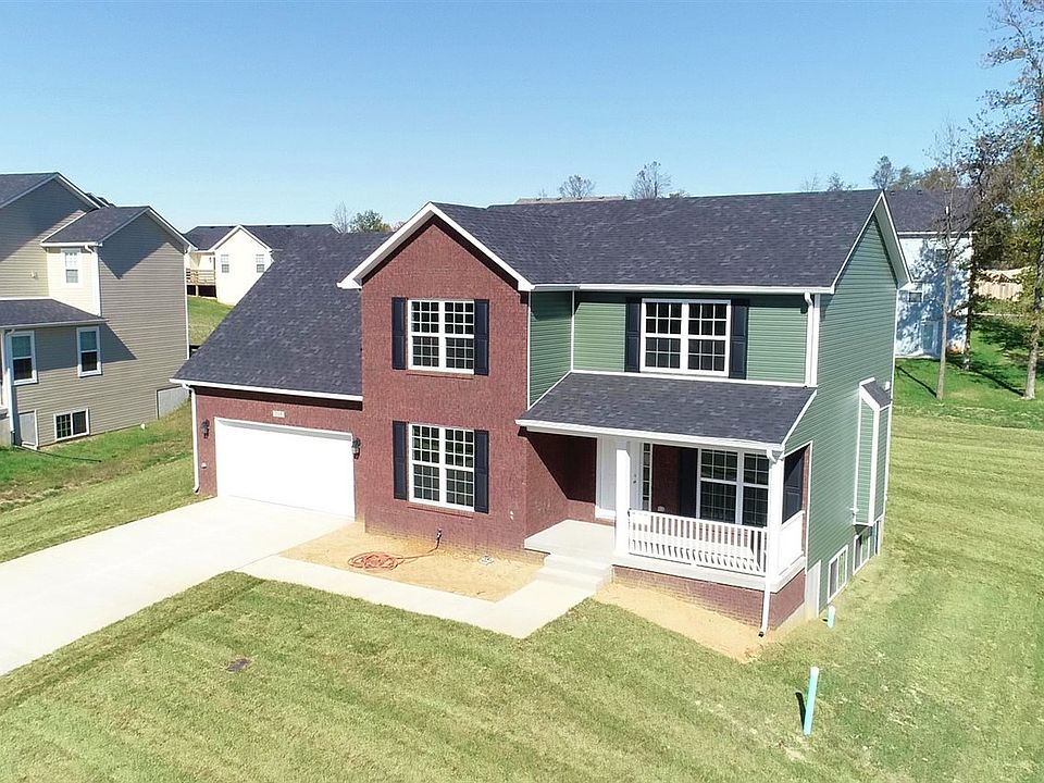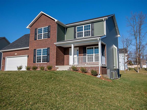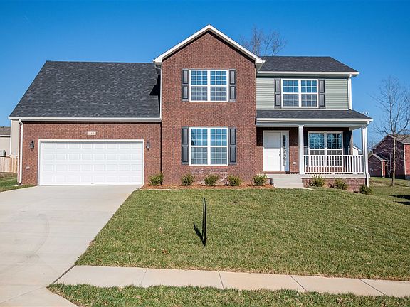 Terrific new construction home by one of Etown's finest! You will love this brick & vinyl 2 story with 4 bedrooms! So many upgrades in this super sharp home. The covered front porch leads you in to handscraped hardwood floors throughout the main level making everything so open & spacious. The large living room features a cozy electric fireplace & views to the front & back yard. The nicely sized dining room includes crown & chair rail molding. The kitchen is a dream with beautiful cabinetry, granite countertops & a peninsula for plenty of workspace. A half bath with ceramic tile plus a laundry area complete the main level. The front staircase leads to the master suite with a large bedroom area, 2 walk-in closets, dual bowl vanity & a big tile shower. There are also 2 additional bedrooms & a full bath. The rear staircase leads to the 4th bedroom that could be used in any number of ways. The unfinished daylight basement includes plumbing for a half bath. A big 2 car garage with painted floor & a covered deck make this the perfect spot for your new Kentucky home!