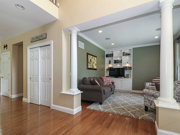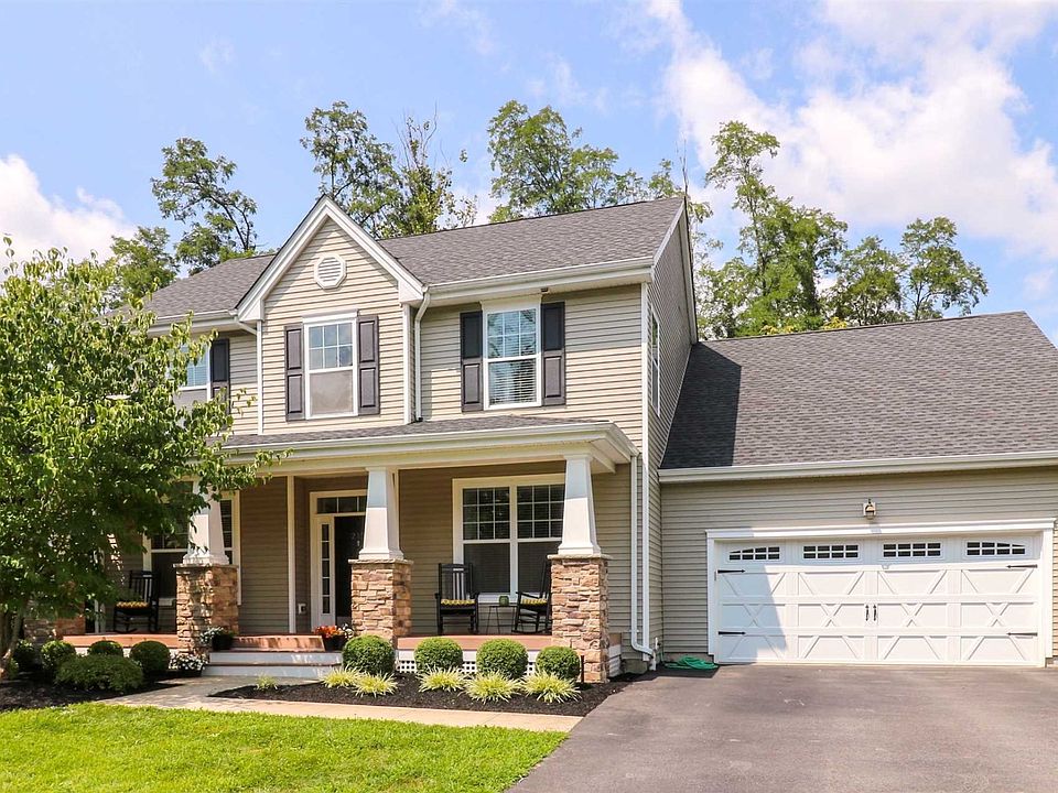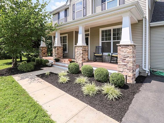 Nothing to do but move in to this gorgeous colonial! Located in the desirable Four Corners community in Hopewell JCT, this fabulous home greats you w/ meticulous landscaping & a rocking chair front porch. The entry foyer features a dramatic two story ceiling, columns, & opens to a formal LR w/ beautiful built-ins & formal DR. The stylish EIK features custom Merillat cabinetry w/ desk, granite countertops, SS appliances, center island w/ seating, & breakfast nook. The open floor plan offers whole house music, hardwood flooring throughout first level & a two-story family room w/ wall of windows, gas fireplace, & built in bookshelves. The MBR suite is located on the first level & features a tray ceiling, 2 large WIC's and a fabulous MBath suite w/ double vanity, whirlpool tub, & separate shower. The second floor features 3 spacious bedrooms & hall bath. Basement w/ egress window & rough under slab plumbing for future finishing. The yard has an irrigation system, is ideal for entertaining, and is adjacent to a forever green buffer on the back & side of home. Just a minute's walk to the community clubhouse, pool, tennis courts, & basketball courts. Perfect commuter location, easy access to NYC. You will love to call this home.
