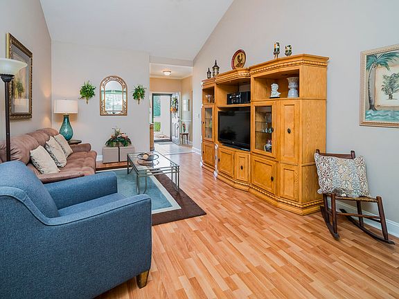 This home is very well maintained with laminate in the living area, tile in the kitchen-dining area and carpet in the bedrooms. The primary bedroom has new carpet and a nice ensuite with a large walk in shower and very large walk in closet. The living area is an open concept with a Carolina room to the left and a separate dinning area to the right. The kitchen has solid surface counter tops & matching backsplash. The washer & dryer are right off of the kitchen with a large pantry right across and easily accessible. HOA includes clubhouse, exercise facility, community pool, playground, walking trails, high-speed internet, phone and cable.