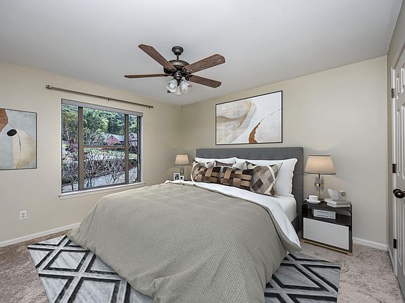 Thoughtfully designed 4 bed, 4 bath home, is perfectly positioned in a quiet cul-de-sac. Generous, level lot offers rare outdoor space with room for anything from a play area or garden to future expansion. The backyard is a private retreat, complete with a covered deck featuring a ceiling fan, stepping down to a spacious circular patio ideal for relaxing or entertaining. Inside, the home’s open & airy layout is enhanced by soaring ceilings, a grand staircase, & elegant transom windows that flood the space with natural light. The main floor designed for easy everyday living, features the primary suite & a guest bedroom, each with its own full bathroom. Perfect for those who value main-level living, for convenience, guests, or multigenerational needs. Upstairs, 2 more bedrooms, bonus room, & additional bathrooms offer flexibility for family, guests, or a home office. The 2-car garage gives ample storage & parking space. Fresh paint throughout puts the finishing touch on this gem. With its quiet location, expansive lot, & easy access to neighborhood schools, shopping, major roads, & popular outdoor areas, this home delivers the space, comfort,&lifestyle.Deal feel out due to financing.