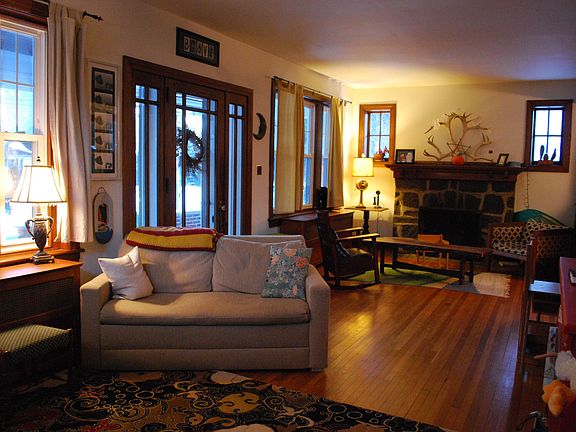 Open House: Sunday, March 23rd 1:00-3:00pm The charming front porch, spanning the full width of the house, welcomes guests through an original Arts and Crafts style beveled glass front door. The large front room with stone masonry fireplace and accented wooden mantel provide a versatile living space. Built-in oak divider and tapered pillars distinguish the dining room from the living space while still allowing for an open floor plan in this high ceiling first floor. These features are commonly found in Arts and Crafts architecture, improving family interaction by discouraging barriers. The sizable kitchen is accented by dimmable hanging blue glass light fixtures and butcher block countertops. A pantry and mudroom adjoin the kitchen. First floor bedroom, walk-in closet, and full bath are connected via a short hallway in the master suite. The second floor features a significant built-in bookcase and wood railing around the staircase. Two bedrooms and a walkthrough bedroom are accompanied by a walk-in cedar closet. Utilitarian spaces including the unfinished basement and four crawl spaces allow for easy access to home utilities and provide plenty of storage space. Off street parking is provided by a long driveway with turn around connected to a detached two car garage. The garage includes a workshop and is serviced by a 60amp sub panel and features a concrete floor and plenty of built-in lighting. Wood burning stove available for the garage upon request. The home is located in a secluded neighborhood close to shopping, public transportation and major highways. Candlebrook Elementary, Upper Merion Middle School, Upper Merion High School