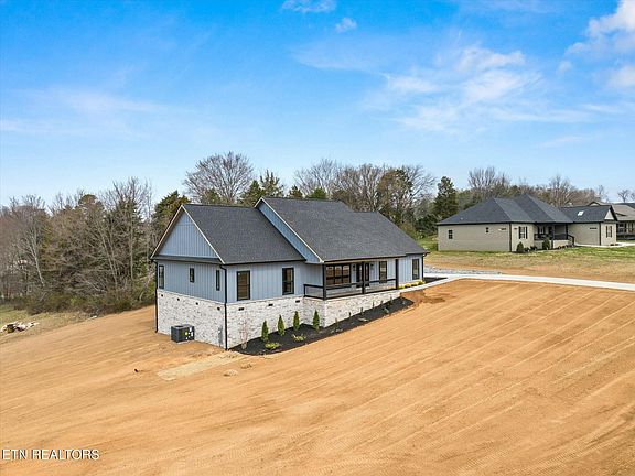 Welcome to this beautifully crafted stone and board and batten home, offering plenty of space for everyone. Set against a backdrop of breathtaking mountain views, this home is designed for both comfort and style. Step inside and discover the open concept living space with an exquisite stone fireplace and expansive kitchen featuring elegant two tone cabinets and granite countertops. The primary suite will not disappoint featuring custom shelved walk in closets, a sizable walk in tile shower, large dual vanity, and a private water closet. The split bedroom layout lends for owner's privacy with the additional three bedrooms or two bedrooms and office on the opposite end of the house. Enjoy outdoor living at its finest on the extensive deck, ideal for gatherings or quiet mornings with your coffee. High end finishes and thoughtful details in every corner seamlessly blend charm and modern elegance. Don't miss the chance to own this fantastic home perfect for families, work from home lifestyles, and anyone who appreciates refined living with a view! Very convenient location close to airport, restaurants, Great Smokey Mountains National Park and so much more!
