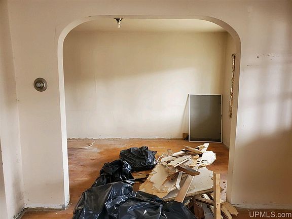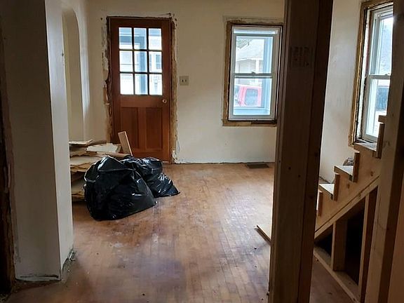 Spacious city home in need of your carpentry skills! Covered front entry leads to an inviting sun porch. Hardwood floors remain in parts of lower level. Prior owner replaced many windows (2015-2016). Covered porch/patio area off the back of the home could potentially be screened-in. Detached garage w/workshop directly behind home off alley.