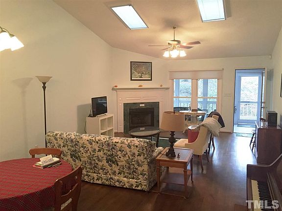 Rare Ranch-style Townhome in Cary boasting a great water view! All rooms on the 1st floor make this nice & easy to navigate. Hardwood floors throughout the kitchen, dining & family rooms. Vaulted ceiling in Family room with new skylights installed in 2014 make this home extra bright and open. You will love being able to sit out back on the screened porch & look at the lake! All furniture is negotiable. Wow, this home even has a 1-car garage! Perfect low maintenance starter home or retirement home!