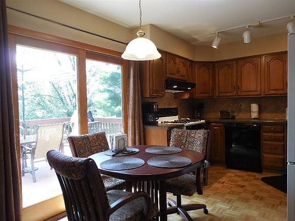 Spacious 3 Bdrm Ranch on quiet cul de sac! Newer Gilkey windows, roof, furn, chimney, hwh-hwd flrs, coved ceilings, remodeled kitchen w/wood cabs & w/o deck, finished LL fam rm w/walkout to private wooded rear yard, 2 car tandem garage (part of gar is used as workshop) plus additional covered parking under deck, covered front porch & more!