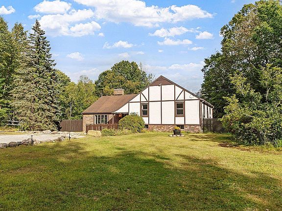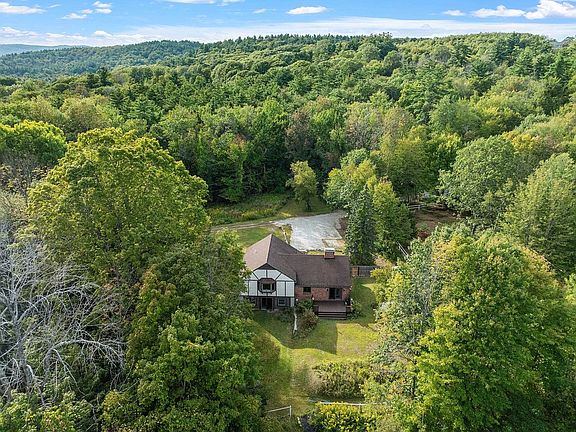 Privacy, Unique, absolutely stunning home describes this property set on 7.6 acres abutting conservation land. You can see by the pictures that this picturesque setting would be sought after. There was an old schoolhouse on this property that was disposed of but not before recovering some antique items that are in the current home. One of which is an antique cook stove in the kitchen, along with the beamed ceiling and bricks saved from the schoolhouse. All the bedrooms are a good size, with an over sized main bedroom. There is a large bay window in the main bedroom bringing in lots of light and has a lovely view of the flower gardens. In the walkout basement there is a family room, bath and laundry room. The pond on the property is approx, 100'x100'. Also on the property is a large outbuilding that children of previous owners used as a place to play when they were growing up, There are also 2 sheds, and 3 small barns with a stall in each, each being large enough for 1 horse. In the past the previous owner had 3 horses Some of the property is fenced in. This property abuts conservation land located to the rear of property, and as you can see in the pictures a campsite has been set up to enjoy overnight camping on the property. All room measurements are approximate. Property is being sold with no warranties.