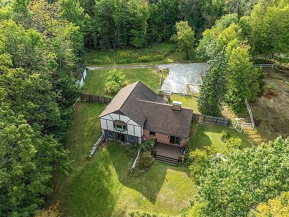 Privacy, Unique, absolutely stunning home describes this property set on 7.6 acres abutting conservation land. You can see by the pictures that this picturesque setting will be sought after. All the bedrooms are a good size, with an over sized main bedroom. There is a large bay window in the main bedroom bringing in lots of light and has a lovely view of the back fields and garden area.. In the walkout basement there is a family room with lots of windows and views of the back yard, bath and laundry room. The pond on the property is approx, 100'x100'. Also on the property is a large outbuilding, 2 sheds, and 3 small barns. Some of the property is fenced in which is great if you have animals. This property abuts conservation land located to the rear of property, and as you can see in the pictures, a campsite has been set up to enjoy overnight camping on the property. This is truly a home to enjoy and relax in.
