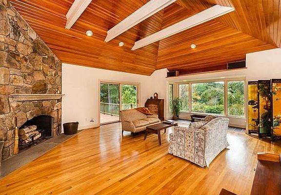 - Liv Dscrp: Fireplace, Window(s) - Bay/Bow/Box, Ceiling - Cathedral, Deck - Exterior, Recessed Lighting, Slider, Flooring - Wood