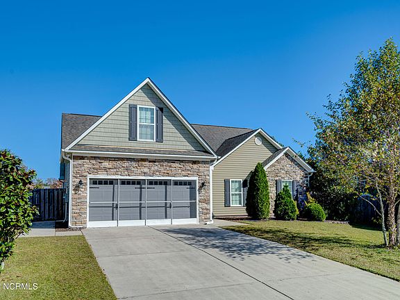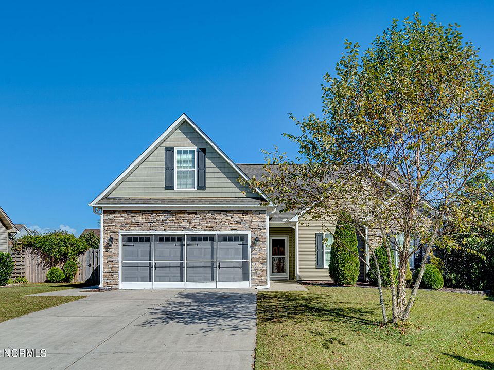 Beautiful 3 BR home plus Bonus room in popular Hampstead Pines. Excellent central location close to shopping centers this home sits in the back of a quiet cul-de-sac. Sought after Topsail School's and just minutes to the beach! Home features an open floorplan with spacious kitchen featuring granite counters and stainless steel appliances. Kitchen overlooks the LR with vaulted ceilings and gas log fireplace. The homeowner recently added a beautiful covered porch off the kitchen. All 3 BR's on main floor including master suite with oversize double vanity, walk in closet, with a shower. Garage has a fully screened retractable door making the garage a great space for hanging out and avoiding any insects! Back yard is private and fully fenced. Hampstead Pines offers boat and RV storage and your water and sewer are currently included in your HOA dues as well.