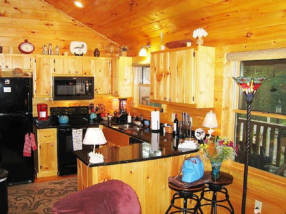 MTN CABIN * this like new 2/1 Cabin on level / gentle land has a large SCREEN PORCH and gas log fireplace, cathedral ceilings and ceiling fanes, Granite countertops. All wood ceilings, floors walls. Nicely landscaped with a FIRE TABLE in the back yard. Great sitting spot for friends and family to listen to the quiet of the woods. Enjoy your getaway only 2 hours from 5 major cities including Atlanta GA and Asheville NC. Only 1 day drive from anyplace in Florida. You will love your new home. End of the road privacy. THIS IS A HOME FOR SALE ready to move into, NOT A MODEL THAT NEEDS TO BE BUILT! I expect this will sell very quick. Some furnishing may be made available. NO STEPS, FIBER OPTICS!