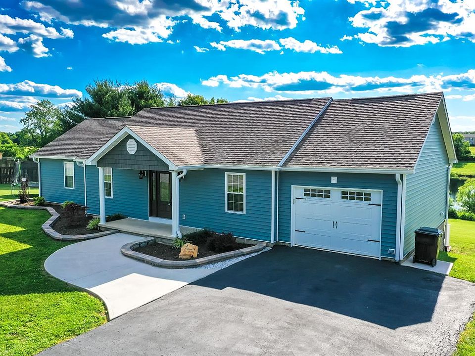 You are going to fall in love with the scenic view & overhauled Ranch W/ huge walkout basement! This home sits on a double lot with a pond view. It is an excellent opportunity to have a home in the Hustonville area just outside of Danville with a lower tax rate. The list of upgrades is extensive: NEW & UPDATED: Sidewalk, Vinyl siding, Doors, Windows, Garage Paint, Neutral Paint in the Interior, Hardwood Flooring, Tile, Vanities, Granite, Kitchen Hardware, Kitchen Appliances (Lightly Used), New Deck & Railing, Newly Finished Basement & Drywall (Lights, Barndoor, 3rd Bath), Front Door is off the chain! Roof is about 10 Years old - in excellent condition. This home is immaculate and you have to see it to appreciate it. In the basement their is another garage perfect for a workshop, man cave or utility area.