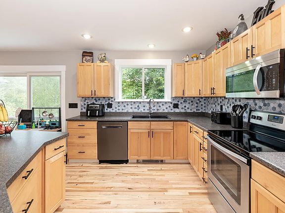 Gilford, NH - Welcome home! This FIVE bedroom / THREE bathroom home is approx. 2800 square feet of finished living space! Radiant heat in the floors of your oversized mudroom with plenty of storage space for all your outdoor gear! The open concept kitchen; dining and living room are filled with natural light and beautiful new hardwood floors. A built in electric fireplace makes the living area a cozy place to relax in all seasons! This adorable home has a primary suite with a walk -in closet; full bathroom with double vanity; built-in tv and its own electric fireplace; two large bedrooms and an additional full bathroom WITH laundry room ALL ON THE FIRST FLOOR! Not to mention a walk-in pantry! The finished, walk out lower level has custom woodwork throughout with two more additional bedrooms; a bathroom; large entertaining space; storage and a space for a home office. PUBLIC SEWER AND WATER! Centrally located between Gunstock Mountain and Lake Winnipesaukee. Close to Bank of NH Pavilion; shopping; restaurants; hiking; biking and all the other amazing amenities of the Lakes Region! Perfect second home or investment property - home could comfortably sleep 12 plus people in all seasons! Nothing to do but move in or start short term renting! A must see in person!