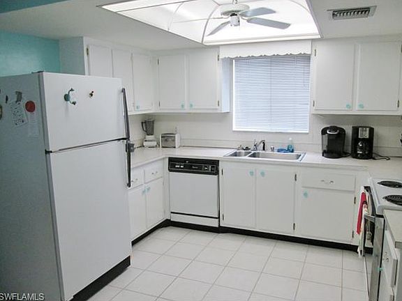 Excellent value in desirable North Naples! PLUS seller is offering a Home Warrantee! This first floor unit has been well maintained recently painted and partially upgraded. The split bedroom floor plan has a large dining- living area extending to a Florida room, featuring a sunny wall of windows PLUS a large open outdoor patio offering a tranquil tropical setting. The guest bedroom features a Murphy bed wall unit with a queen bed allowing the room to be used for guests or as an office with its matching corner desk. This Small complex of 35 units has a community pool, BBQ area and extra storage. Located close to shopping and restaurants with a short drive to Mercato and the pristine Naples beaches.